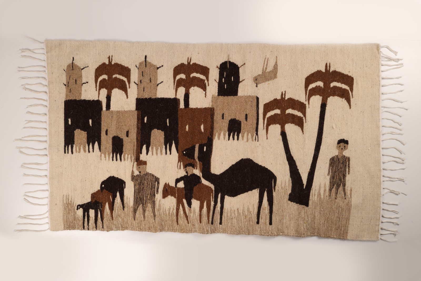 Echoing the stone patterns and forests of Ajloun, this kilim arranges repeating diamonds across a soft cream ground. Deep reds, greys, and navy add refined contrast within an olive outer border.