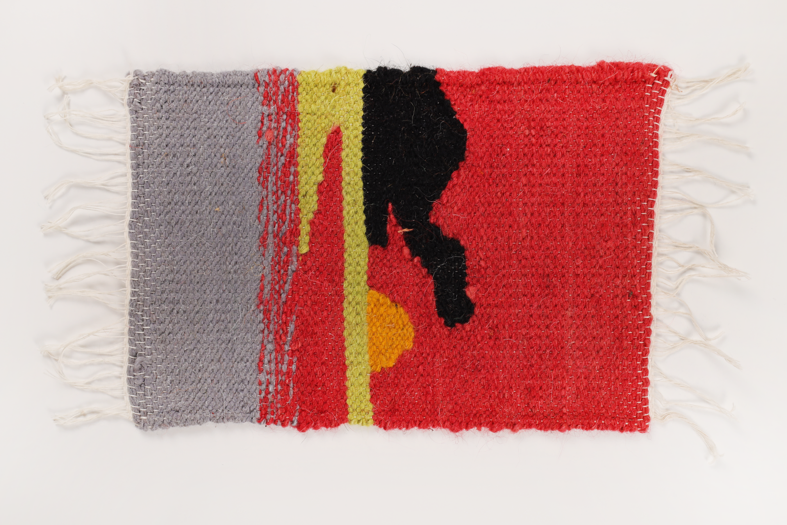 A richly decorated piece packed with diamond motifs, cords and tassels in red, green, blue and black. The format and embellishment reference celebratory camel and saddle trappings long made by Bani Hamida families for weddings and seasonal migrations.