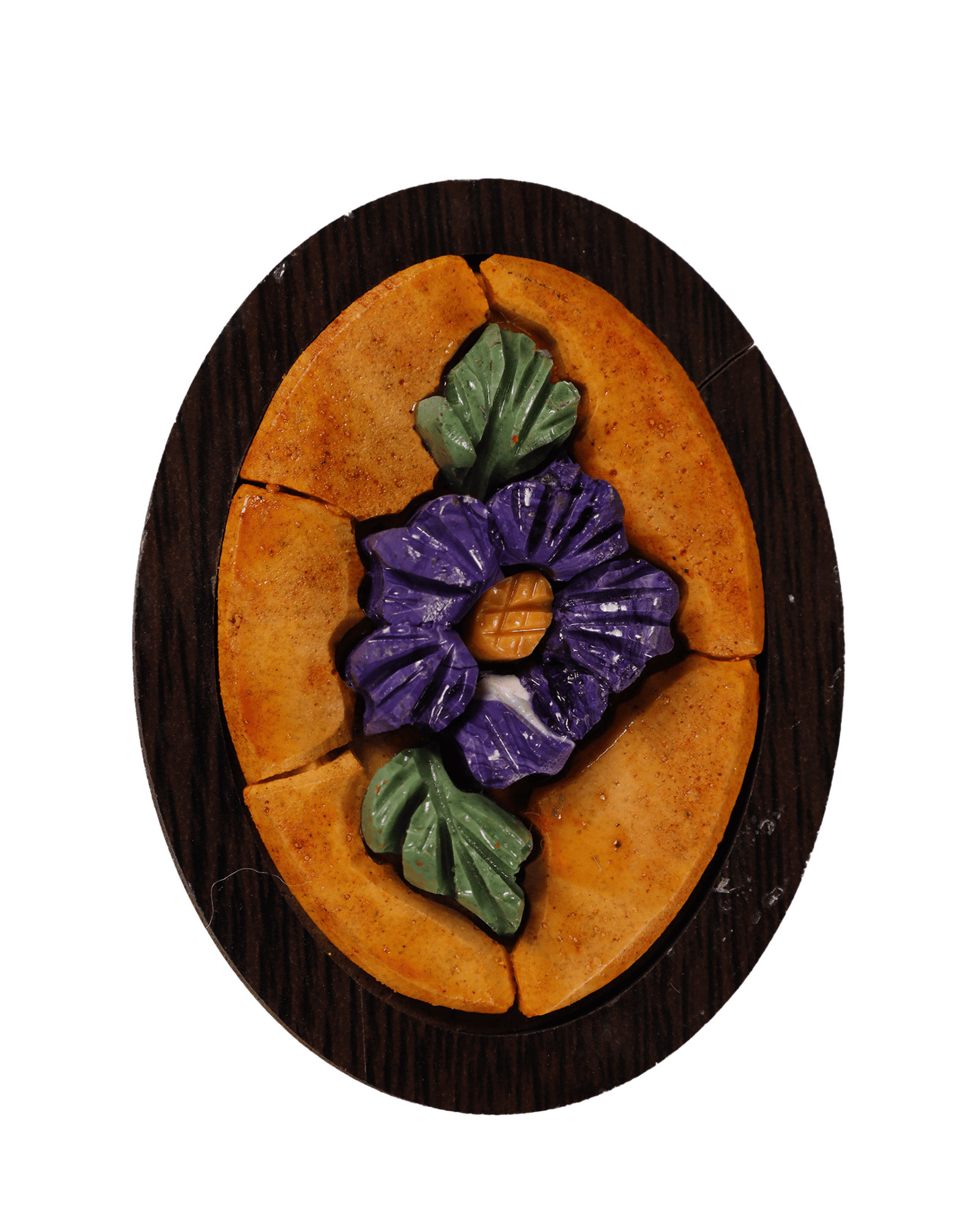 Size: 20 – 30 cm. Handcrafted stone-look mosaic plaque inspired by Jordan’s Jerash, finished on a dark-toned base with rich, natural textures.