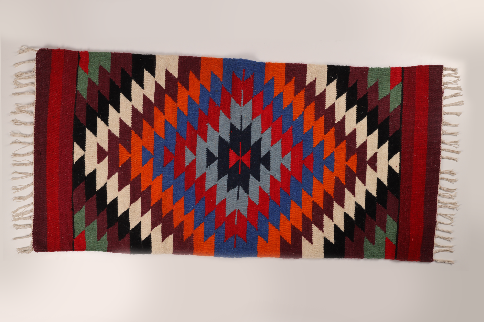 • Handwoven round tapestry with expressive fringe