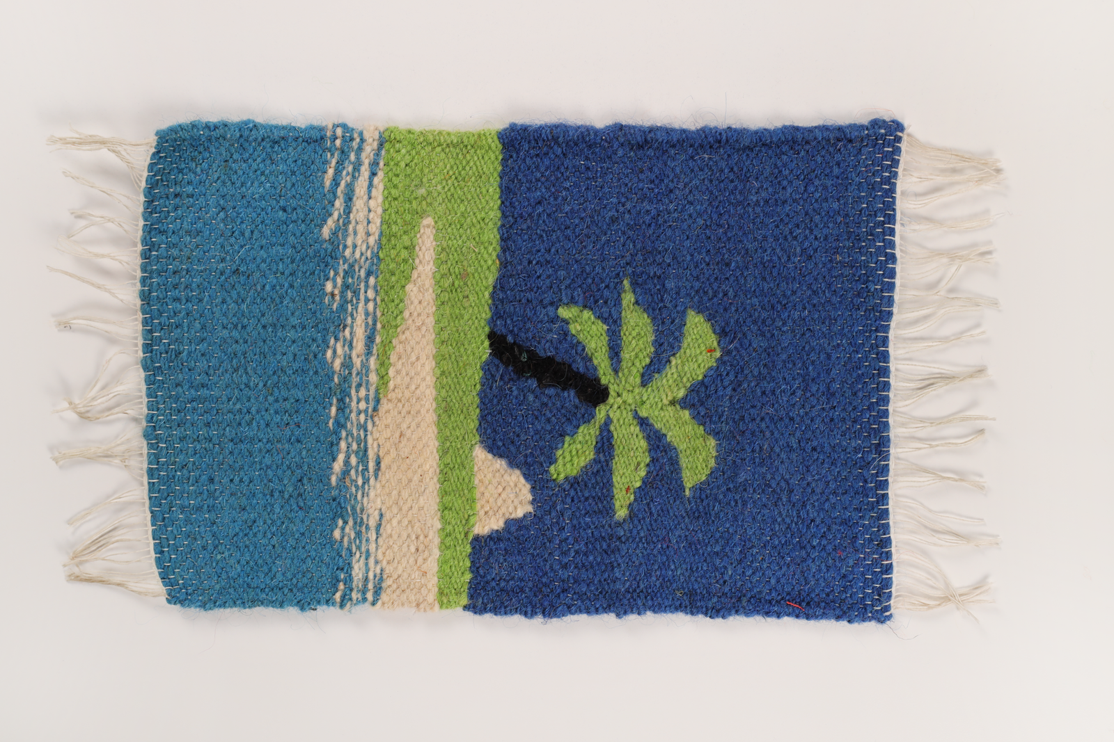 A black cliff profile and date-palm green reference Mukawir (Machaerus), the dramatic hilltop inside Bani Hamida territory. Stark color fields emphasize the site’s sheer drop to the wadis below.